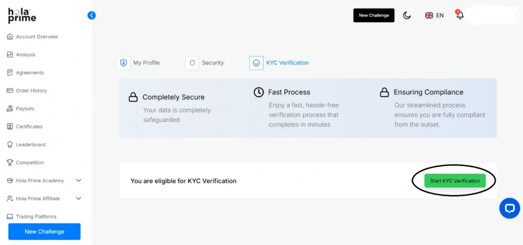 For buying a challenge, no documents are needed. However, to receive a Hola Prime Account, you’ll need to provide KYC documents and sign a contract that will be visible in your dashboard under the “Agreements” tab. Once your verification is successful, we will send you the credentials of the Hola Prime Account.