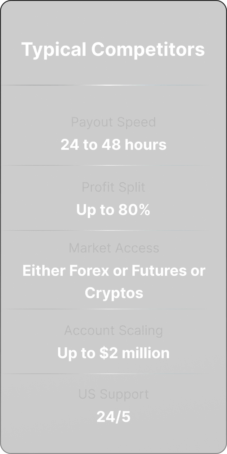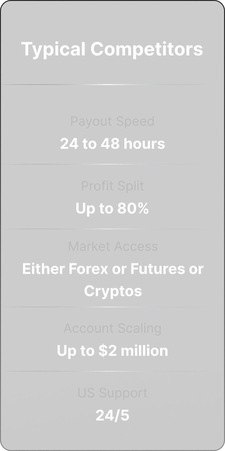 Industry’s first one hour payout prop firm.